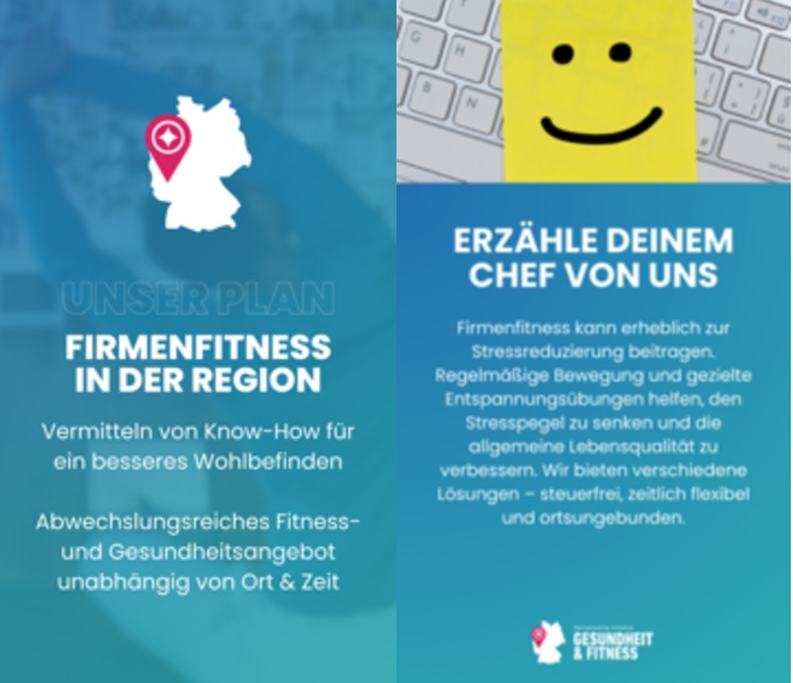Firmenfitness kann erheblich zur Stressreduzierung beitragen. Regelmäßige Bewegung und gezielte Entspannungsübungen helfen, den Stresspegel zu senken und die allgemeine Lebensqualität zu verbessern. Wir bieten verschiedene Lösungen – steuerfrei, zeitlich flexibel und ortsungebunden.